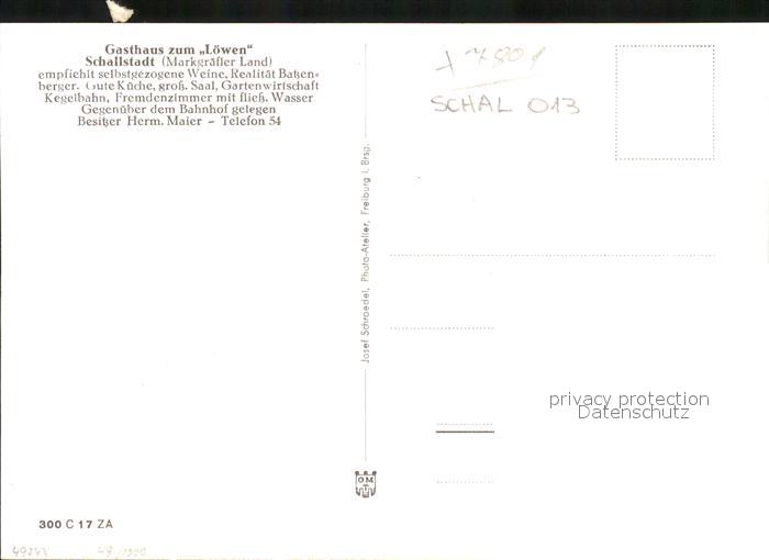 31735088 Schallstadt Gasthaus zum Loewen mit Kegelbahm postalisch nicht gelaufen Erhaltung siehe scans KatCode: 11110008315098