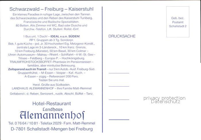 71830537 Schallstadt Mengen Hotel-Restaurant Landhaus Alemannenhof postalisch nicht gelaufen Erhaltung siehe scans KatCode: 11110008315098