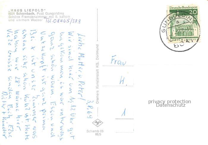 74024158 alte Postkarte Schambach Gungolding Kipfenberg Eichstaett Bayern Haus Liepold postalisch gelaufen Erhaltung siehe scans [WerneD78] KatCode: 11110009176138