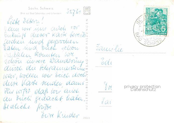 72849504 alte Postkarte Schandau Bad Lilienstein postalisch gelaufen Erhaltung siehe scans [KathaD81] KatCode: 11110014287020