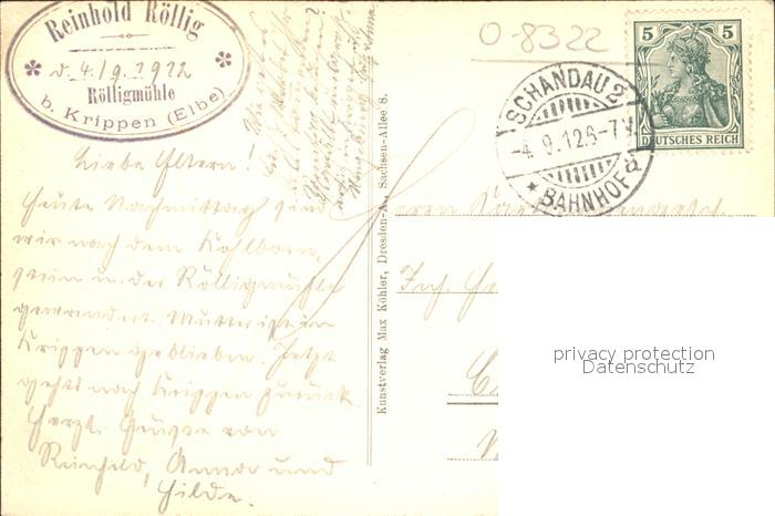 42286265 alte Postkarte Schandau Bad Roellig Muehle im Krippengrund postalisch gelaufen Erhaltung siehe scans KatCode: 11110014287020
