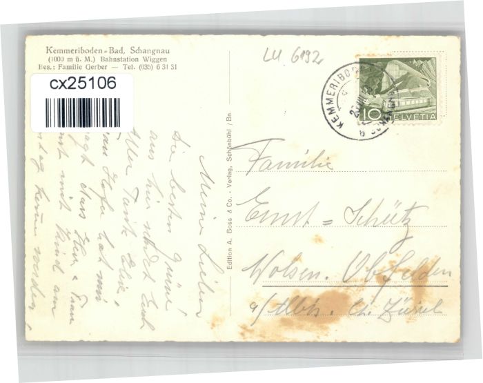 10753338 alte Postkarte Schangnau Kemmeribaden postalisch gelaufen KatCode: 11470060235730