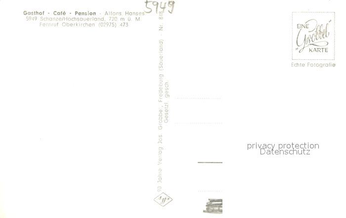 73709224 Schanze Sauerland Gasthof Pension Alfons-Hanses postalisch nicht gelaufen Erhaltung siehe scans [LiesaD40] KatCode: 11110005958040