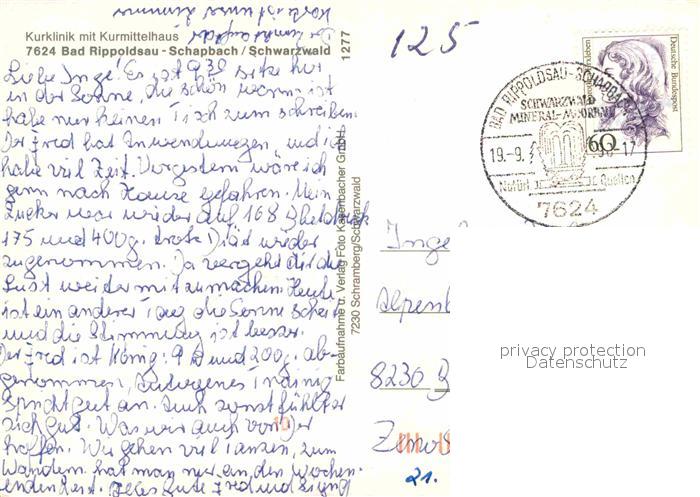 72781954 alte Postkarte Schapbach Kurklinik Kurmittelhaus Ansicht vom Waldrand aus postalisch gelaufen Erhaltung siehe scans [FriedD77] KatCode: 11110008237075