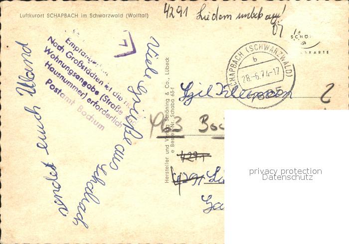 72526718 alte Postkarte Schapbach Ortsansicht mit Kirche Luftkurort im Schwarzwald postalisch gelaufen Erhaltung siehe scans KatCode: 11110008237075