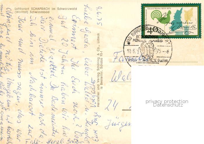 73852285 alte Postkarte Schapbach Schwimmtal Luftkurort im Schwarzwald postalisch gelaufen Erhaltung siehe scans [FriedD77] KatCode: 11110008237075