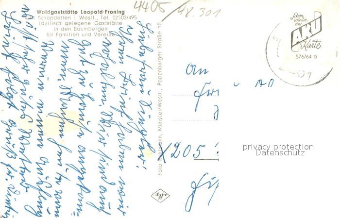 73707158 alte Postkarte Schapdetten Waldgaststaette Leopoldshoehe Longinus-Turm Marienhof Jugendherberge postalisch gelaufen Erhaltung siehe scans [LiesaD40] KatCode: 11110005558032