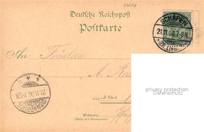 33558973 alte Postkarte Schapen Emsland Hotel Kellerwessel Duesingsche Wirthschaft Handelsschule Kath Kirche Ev Kirche postalisch gelaufen Erhaltung siehe scans [WerneD78] KatCode: 11110003454046