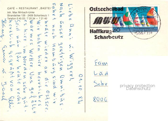 73768562 alte Postkarte Scharbeutz Ostseebad Cafe Restaurant Bastei postalisch gelaufen Erhaltung siehe scans [WerneD78] KatCode: 11110001055044