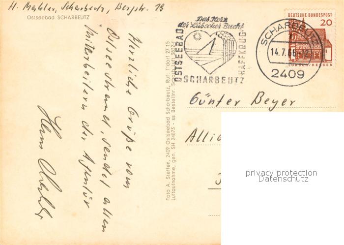 73629280 alte Postkarte Scharbeutz Ostseebad Fliegeraufnahme postalisch gelaufen Erhaltung siehe scans [FriedD77] KatCode: 11110001055044