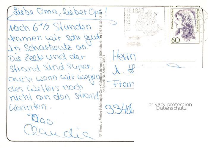 73122974 alte Postkarte Scharbeutz Ostseebad Fliegeraufnahme Buehne Wellenbad postalisch gelaufen Erhaltung siehe scans [NatalD47] KatCode: 11110001055044