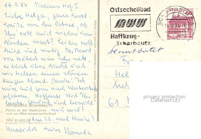 73204200 alte Postkarte Scharbeutz Ostseebad Fliegeraufnahme Seebruecke Meerwasserwellenbad postalisch gelaufen Erhaltung siehe scans [NatalD47] KatCode: 11110001055044