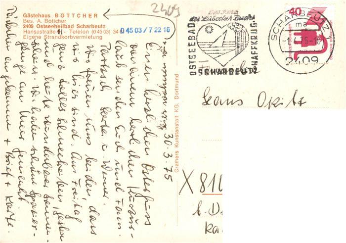 73940365 alte Postkarte Scharbeutz Ostseebad Gaestehaus Boettcher Gaststube Strand postalisch gelaufen Erhaltung siehe scans [FriedD77] KatCode: 11110001055044
