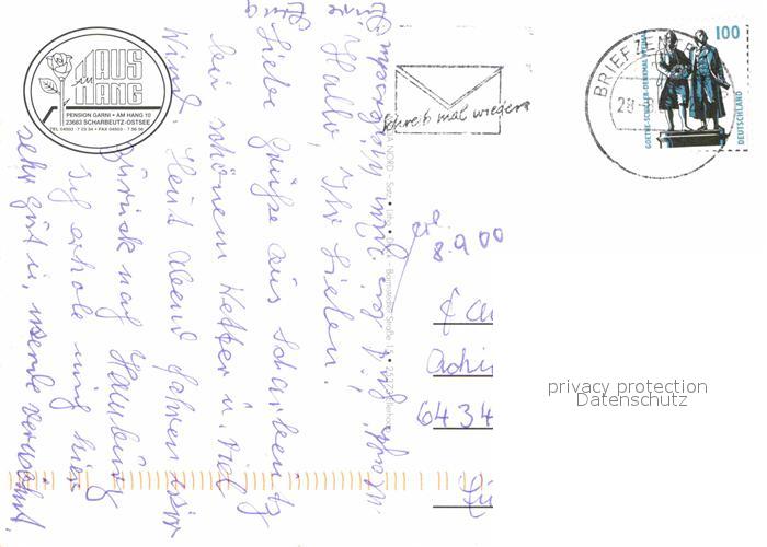 72753981 alte Postkarte Scharbeutz Ostseebad Haus am Hang Pension garni Strandkoerbe postalisch gelaufen Erhaltung siehe scans [FriedD77] KatCode: 11110001055044