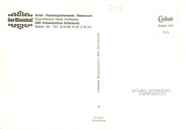 73569559 Scharbeutz Ostseebad Hotel Ferienappartements Restaurant Der Wennhof postalisch nicht gelaufen Erhaltung siehe scans [WerneD78] KatCode: 11110001055044