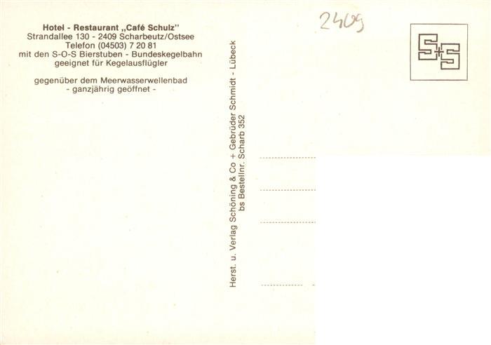 73940425 Scharbeutz Ostseebad Hotel Restaurant Cafe Schulz Gatraeume postalisch nicht gelaufen Erhaltung siehe scans [FriedD77] KatCode: 11110001055044