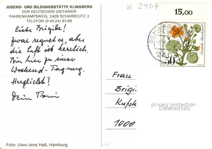 72925196 alte Postkarte Scharbeutz Ostseebad Jugend und Bildungsstaette Klingenberg postalisch gelaufen Erhaltung siehe scans [WerneD78] KatCode: 11110001055044