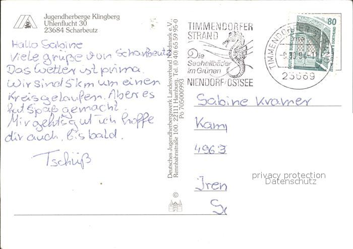 72139606 alte Postkarte Scharbeutz Ostseebad Jugendherberge Klingberg postalisch gelaufen Erhaltung siehe scans KatCode: 11110001055044
