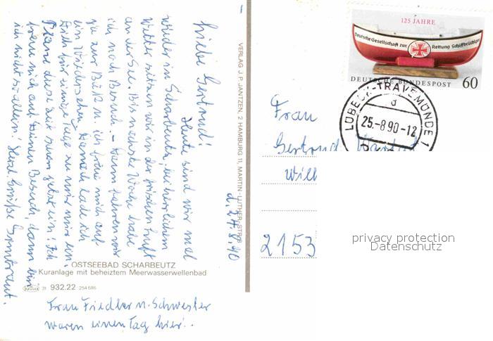 72712976 alte Postkarte Scharbeutz Ostseebad Kuranlage mit Meerwasserwellenbad postalisch gelaufen Erhaltung siehe scans [LiesaD40] KatCode: 11110001055044