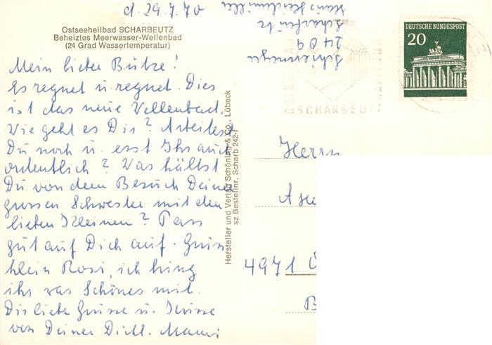 73924970 alte Postkarte Scharbeutz Ostseebad Meerwasser Wellenbad postalisch gelaufen Erhaltung siehe scans [WerneD78] KatCode: 11110001055044