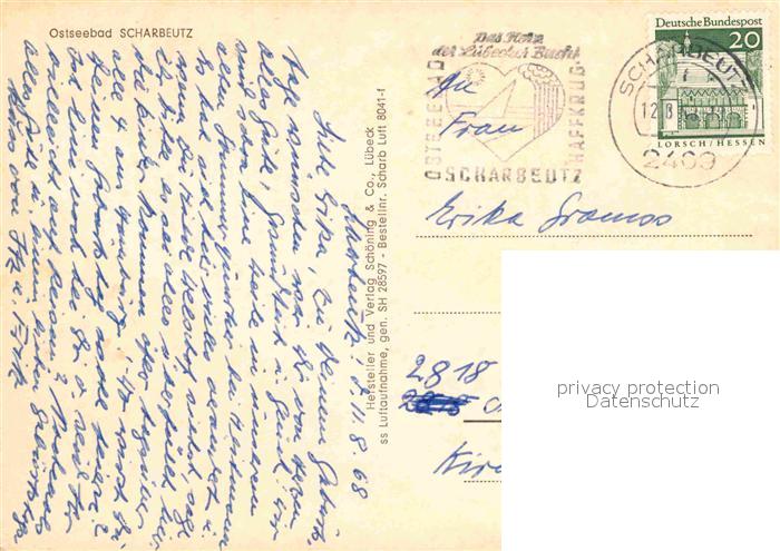 72797918 alte Postkarte Scharbeutz Ostseebad Strand Luftaufnahme postalisch gelaufen Erhaltung siehe scans [KathaD81] KatCode: 11110001055044