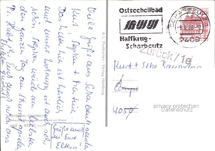 72527592 alte Postkarte Scharbeutz Ostseebad Strand Wellenbad postalisch gelaufen Erhaltung siehe scans KatCode: 11110001055044