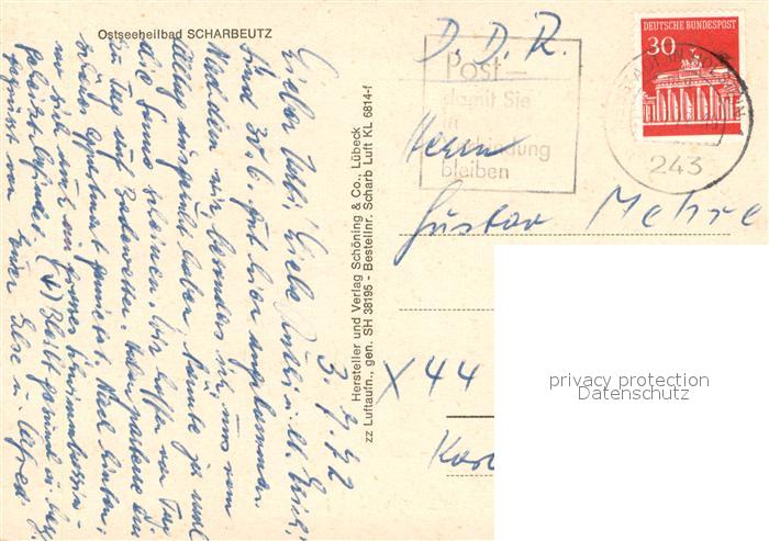 73656412 alte Postkarte Scharbeutz Ostseebad postalisch gelaufen Applikationen Erhaltung siehe scans [WerneD78] KatCode: 11110001055044