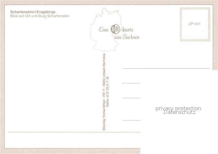 72677485 Scharfenstein Erzgebirge Blick auf Ort und Burg Scharfenstein Fliegeraufnahme postalisch nicht gelaufen Erhaltung siehe scans [FriedD77] KatCode: 11110014181080