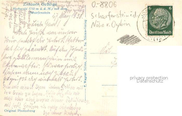 73697969 alte Postkarte Scharfenstein Erzgebirge Hochwald mit dem Scharfenstein postalisch gelaufen Erhaltung siehe scans [LiesaD40] KatCode: 11110014181080