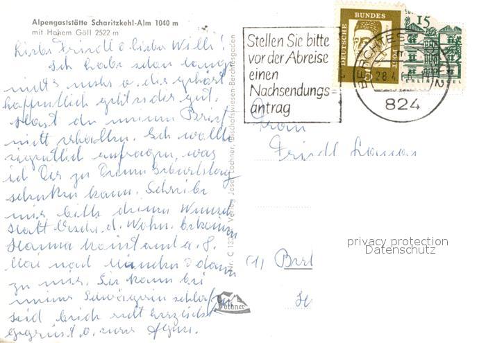 72985170 alte Postkarte Scharitzkehlalm Alpengaststaette mit Hohem Goell postalisch gelaufen Erhaltung siehe scans [LiesaD40] KatCode: 11110009172116