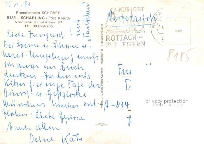 72853806 alte Postkarte Scharling Kreuth Fremdenheim Schober postalisch gelaufen Erhaltung siehe scans [NatalD47] KatCode: 11110009182124