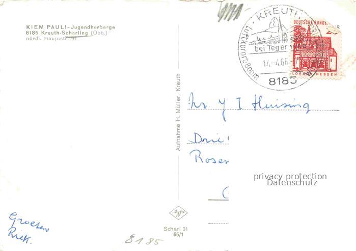 34143334 alte Postkarte Scharling Kreuth Miesbach Bayern Kiem Pauli Jugendherberge postalisch gelaufen Erhaltung siehe scans [WerneD78] KatCode: 11110009182124