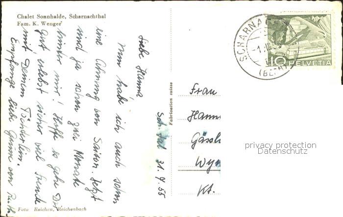 11960843 alte Postkarte Scharnachtal Chalet Sonnhalde postalisch gelaufen Erhaltung siehe scans KatCode: 11470060170226