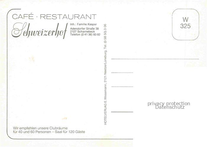 74021055 Scharnebeck Lueneburg Café Restaurant Schweizerhof postalisch nicht gelaufen Erhaltung siehe scans [FriedD77] KatCode: 11110003355033