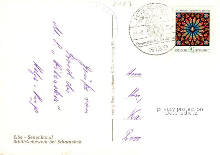 73839445 alte Postkarte Scharnebeck Lueneburg Schiffshebewerk Elbe Seitenkanal postalisch gelaufen Erhaltung siehe scans [FriedD77] KatCode: 11110003355033