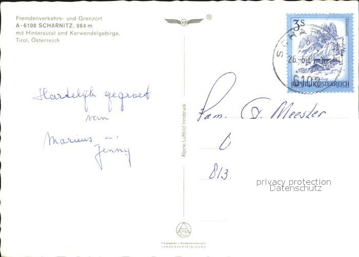 72465805 alte Postkarte Scharnitz mit Karwendelgebirge Fliegeraufnahme postalisch gelaufen Erhaltung siehe scans KatCode: 11390332070348