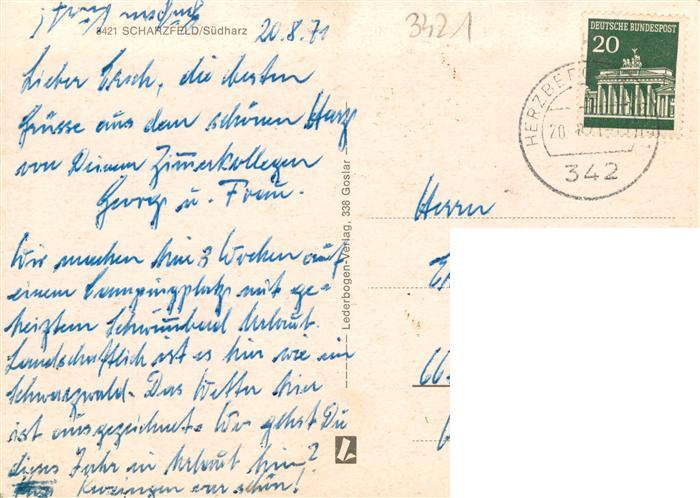 73949390 alte Postkarte Scharzfeld Herzberg am Harz Panorama Teilansichten Kirche Schwimmbad postalisch gelaufen Erhaltung siehe scans [WerneD78] KatCode: 11110003156009