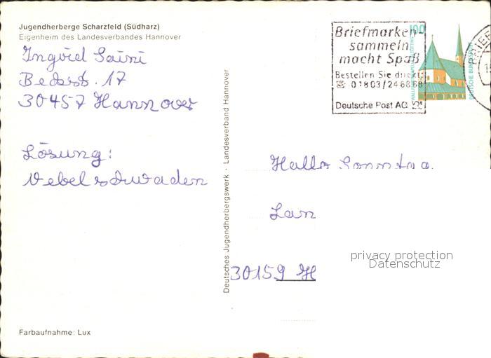 72105027 alte Postkarte Scharzfeld Jugendherberge postalisch gelaufen Erhaltung siehe scans KatCode: 11110003156009