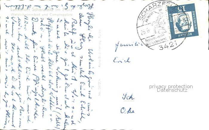 72040319 alte Postkarte Scharzfeld Waldschwimmbad Campingplatz postalisch gelaufen Erhaltung siehe scans KatCode: 11110003156009