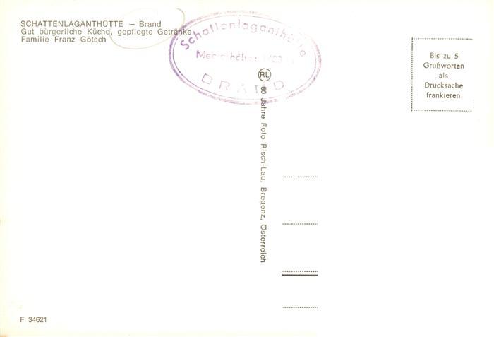 73918049 Schattenlaganthuette 1488m Brand Vorarlberg AT Panorama postalisch nicht gelaufen Erhaltung siehe scans [FriedD77] KatCode: 11390341080105