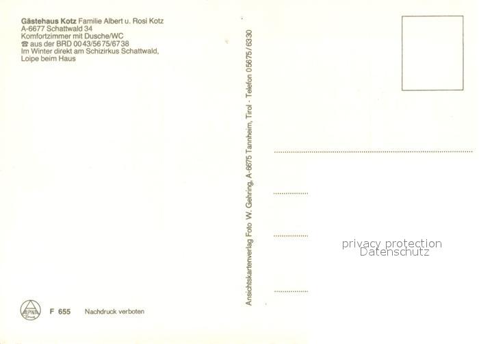 73364299 Schattwald Gaestehaus Kotz Tannheimertal postalisch nicht gelaufen Erhaltung siehe scans [FriedD77] KatCode: 11390331070829