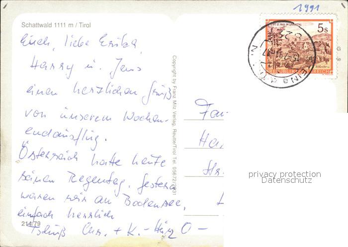 72505438 alte Postkarte Schattwald Kirche Panorama postalisch gelaufen Erhaltung siehe scans KatCode: 11390331070829