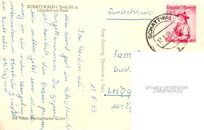 73842724 alte Postkarte Schattwald Tirol AT Alpengasthof zur Post postalisch gelaufen Erhaltung siehe scans [WerneD78] KatCode: 11390331070829