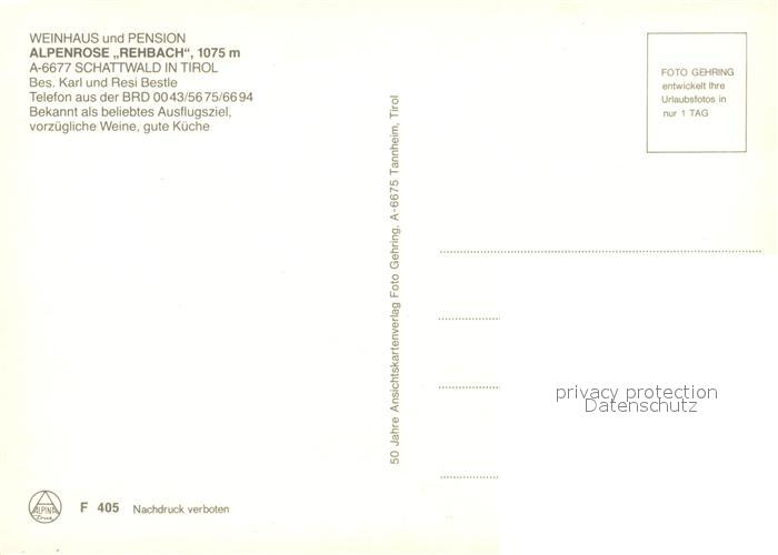 73224250 Schattwald Weinhaus Pension Alpenrose Rehbach Alpen postalisch nicht gelaufen Erhaltung siehe scans [FriedD77] KatCode: 11390331070829