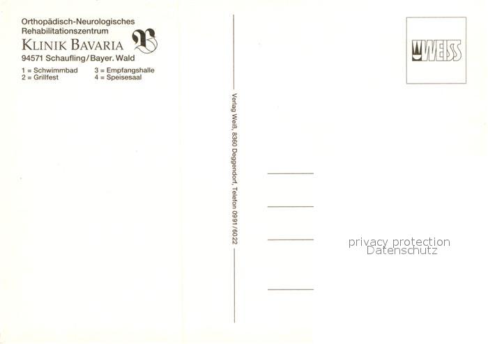 72943892 Schaufling Reha Zentrum Klinik Bavaria postalisch nicht gelaufen Erhaltung siehe scans [KathaD81] KatCode: 11110009271148