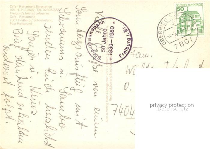 73747578 alte Postkarte Schauinsland Cafe Restaurant Bergstation Fliegeraufnahme mit Feldberg postalisch gelaufen Erhaltung siehe scans [WerneD78] KatCode: 11110008315084