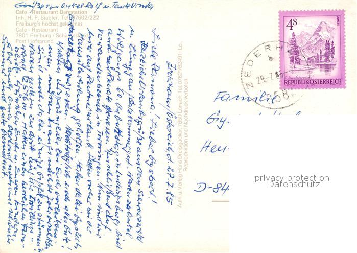 73244437 alte Postkarte Schauinsland Cafe Restaurant Bergstation Schauinsland Wandern Landschaftspanorama Feldberg postalisch gelaufen Erhaltung siehe scans [FriedD77] KatCode: 11110008315084