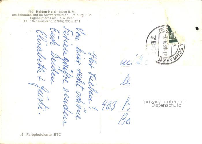 72525836 alte Postkarte Schauinsland Halden Hotel Panorama Schwarzwald postalisch gelaufen Erhaltung siehe scans KatCode: 11110008315084