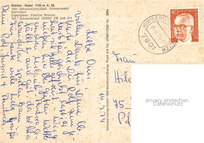 72786004 alte Postkarte Schauinsland Halden Hotel Schwarzwald postalisch gelaufen Erhaltung siehe scans [FriedD77] KatCode: 11110008315084