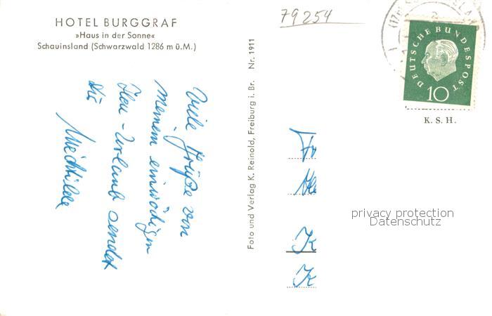 73767796 alte Postkarte Schauinsland Hotel Berggraf Aussenansicht postalisch gelaufen Erhaltung siehe scans [LiesaD40] KatCode: 11110008315084
